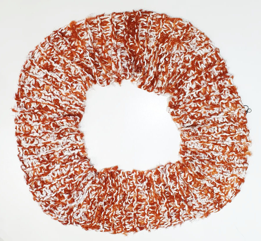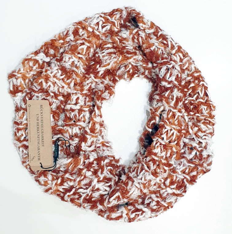 Cachecol feito com fio obtido a partir de sobras de tear na tecelagem Werner de Petrópolis-RJ. Na fiação de seda O Casulo Feliz, as sobras de tear compostas de fios 66% seda, 22% poliéster e 12% viscose, são transformadas no fio de seda Pluma. O fio Pluma é tinto com corantes naturais. A grande capacidade de isolamento térmico da seda, e o design inovador do Cachecol Pluma garantem o conforto mesmo nas temperaturas mais baixas.