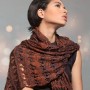 Katakake feito com fio 100% seda, com tingimento nas cores cinza, azul e abóbora.